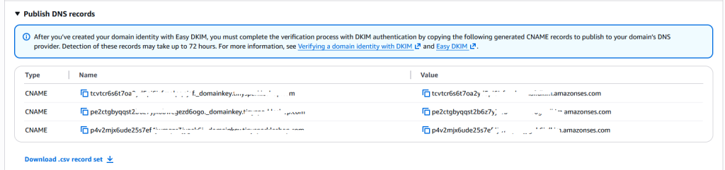 Copy the DKIM CNAME records