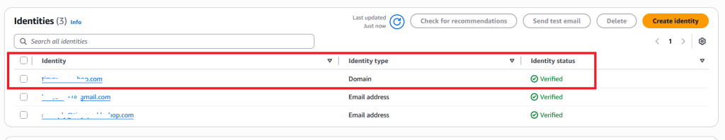 Go to AWS SES → Verified Identities