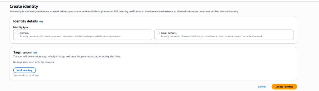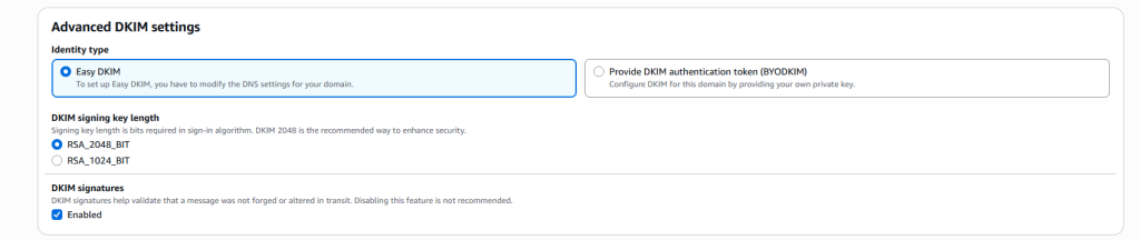 Before sending any email, AWS must trust your domain.
